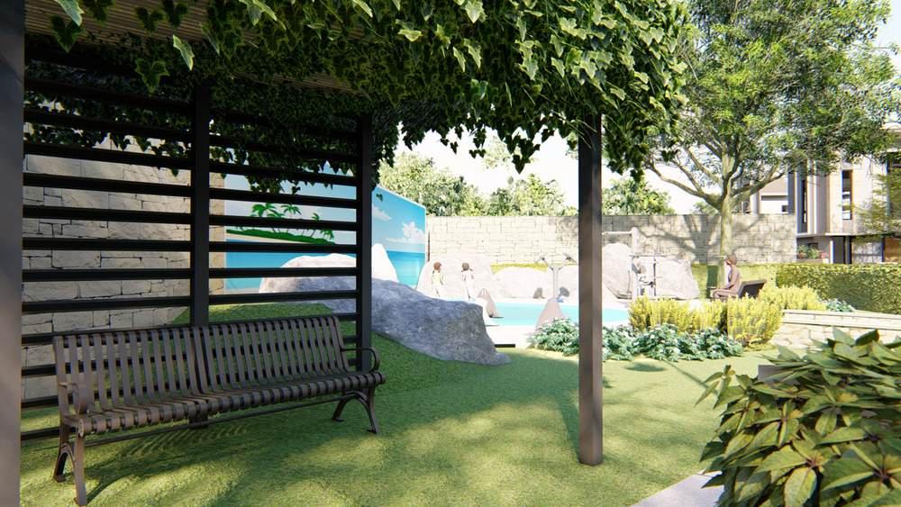 3D rendering using the Lumion application by adding a variety of similar plants and other additional ornaments to enhance the appearance.