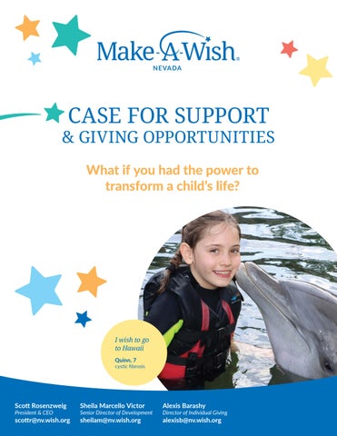 Together, we create life-changing wishes for children with critical illnesses. Make-A-Wish Nevada is part of one of the world's leading children's charities, serving children living in the state of Nevada. With the help of generous donors and more than 00 volunteers, Make-A-Wish Nevada has granted more than 2,800 wishes since its inception.