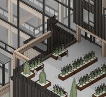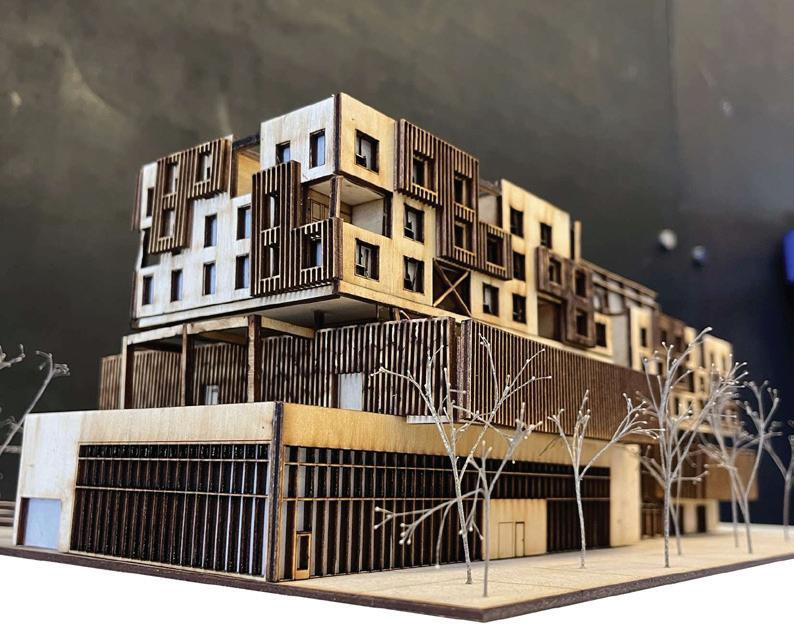 “Soustraction Positive” (Positive Subtraction) is a mixed-use residential project located in the heart of downtown Sudbury along Elm Street. Conceived to revitalize the urban core, the project promotes health and wellness through communitycentered design. Its modular structural grid allows for the selective removal of modules, creating adaptable spaces that foster interaction and connection.