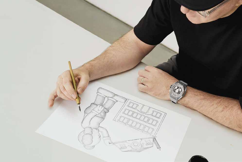 Fully crafted in titanium, the timepiece is imbued with the aesthetic DNA of the New York-based artist, who has placed a miniature COMPANION at the very heart of the watch, and features an innovative peripheral time display.