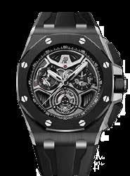 The 43 mm Royal Oak Concept Tourbillon âCOMPANIONâ incorporates KAWSâ aesthetic on both sides of the watch. In a nod to KAWSâ dissected series, the chest of the COMPANION reveals its beating heart, the watchâs tourbillon. The miniatiure 3D character is entirely made of titanium and is mounted on the titanium dial plate decorated with a sunburst motif. Its alternating satin-brushed and sandblasted finishes add texture and depth, while accentuating its rounded silhouette.