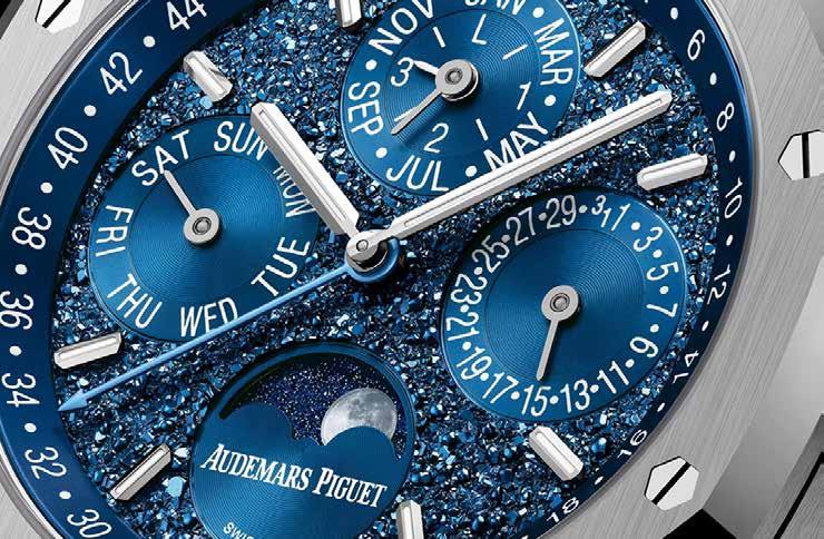 The dial's texture and design evoke a sense of vastness and depth, perfectly complementing the intricate complication that has been a hallmark of Audemars Piguet since its inception.
