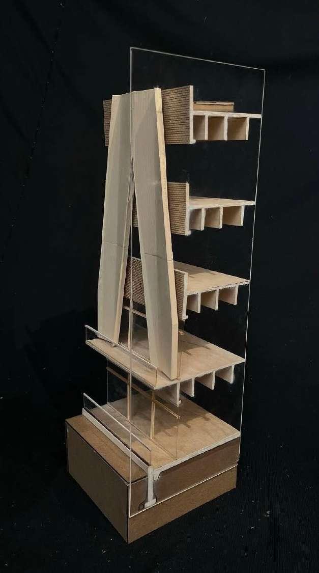 This project presents an innovative steel design for an urban infill site located in Gulfport, Mississippi, aimed at addressing both the aesthetic and functional demands of the environment. With the ever-present challenge of flooding in the region, the design incorporates resilient strategies that prioritize both structural integrity and adaptability to water-related events. The focus on steel cables as a primary material not only ensures the building’s strength and flexibility, but also evokes a sense of dynamic tension that responds to both natural forces and urban context. The project seamlessly integrates into the fabric of Gulfport’s waterfront district, creating a visually striking, environmentally responsive structure that celebrates the unique qualities of the coastal city while providing a model for future resilient urban development.