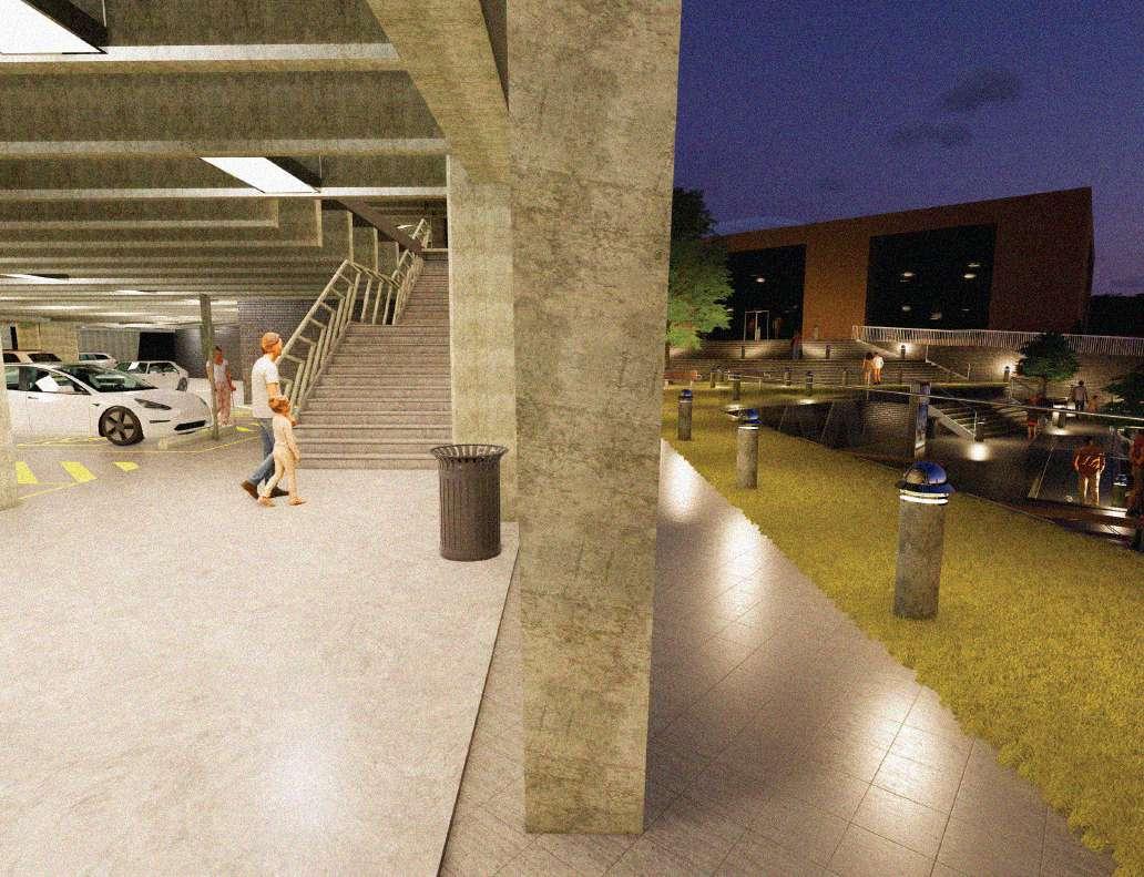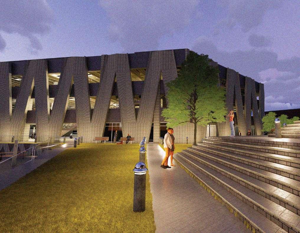 Centered around fostering community engagement, this project seeks to enhance the integration of Downtown Starkville by creating a dynamic space that serves as a connector for the Innovation Hub. Designed to be a vibrant focal point, the building will offer an inviting environment for pedestrians and visitors. Its welcoming courtyard provides a central gathering space, while the striking façade adds visual interest to the streetscape. Additionally, the multi-purpose rooftop offers versatile options for community events, gatherings, and recreation. Overall, this project is not only about linking the Starkville community to the Hub but also about bringing people together, encouraging interaction, and creating a shared sense of belonging and connection.