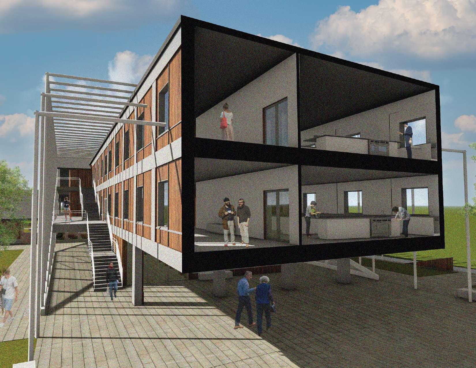 By anchoring each corner, the design allows the project to effectively define and dominate the block from all sides, eliminating any potential weak points that could feel isolated or unsafe. Given that this is a campus setting, establishing a clear and secure perimeter was a key consideration in the design process.