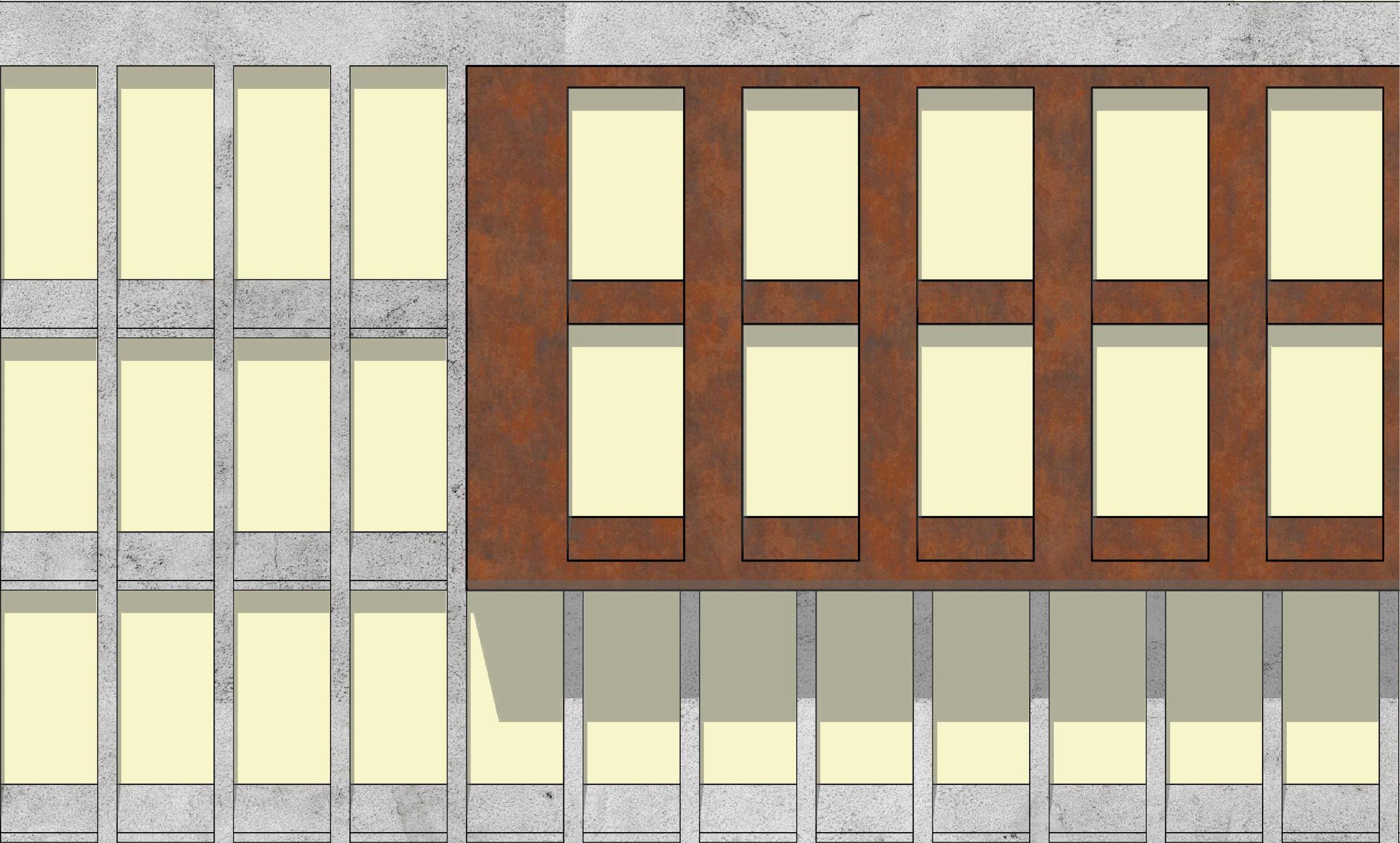 This project involved a one-month design process focused on redesigning the façade of the Landmark Building in Jackson, MS. We were required to preserve the building’s existing structure and were not allowed to alter the first floor. Additionally, we were advised to avoid incorporating a screen into the design. I was particularly committed to preserving the curved corner of the façade and sought to redesign it in a way that emphasized this feature. To highlight the curve, I extruded cantilevers along the façade, drawing attention to the existing form. To further enhance the composition, vertical concrete louvers were added to the original façade plane, transitioning the design from horizontal to vertical. The new vertical concrete surface now serves as a backdrop for the cantilevered corten steel extrusions, creating a striking contrast.