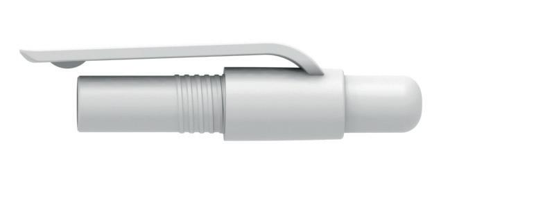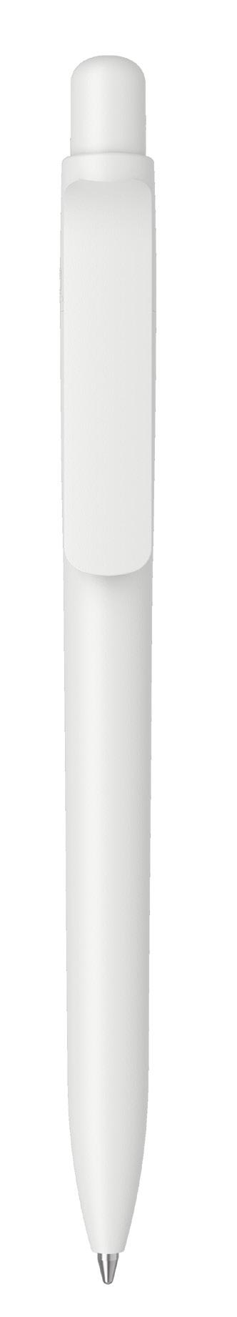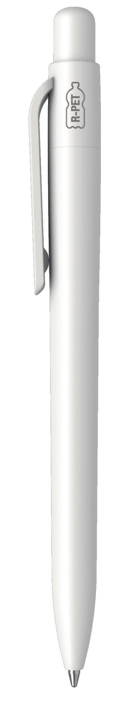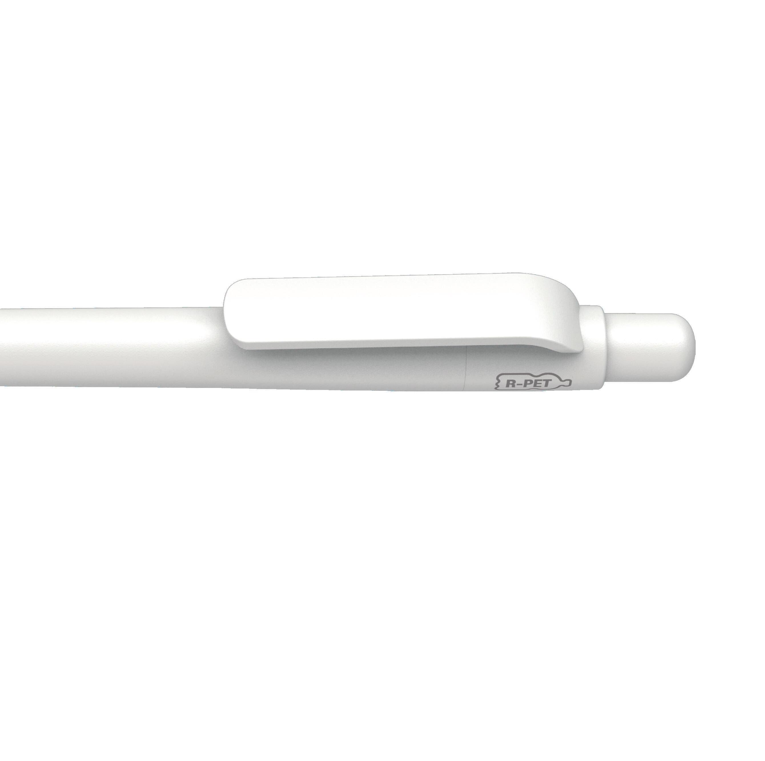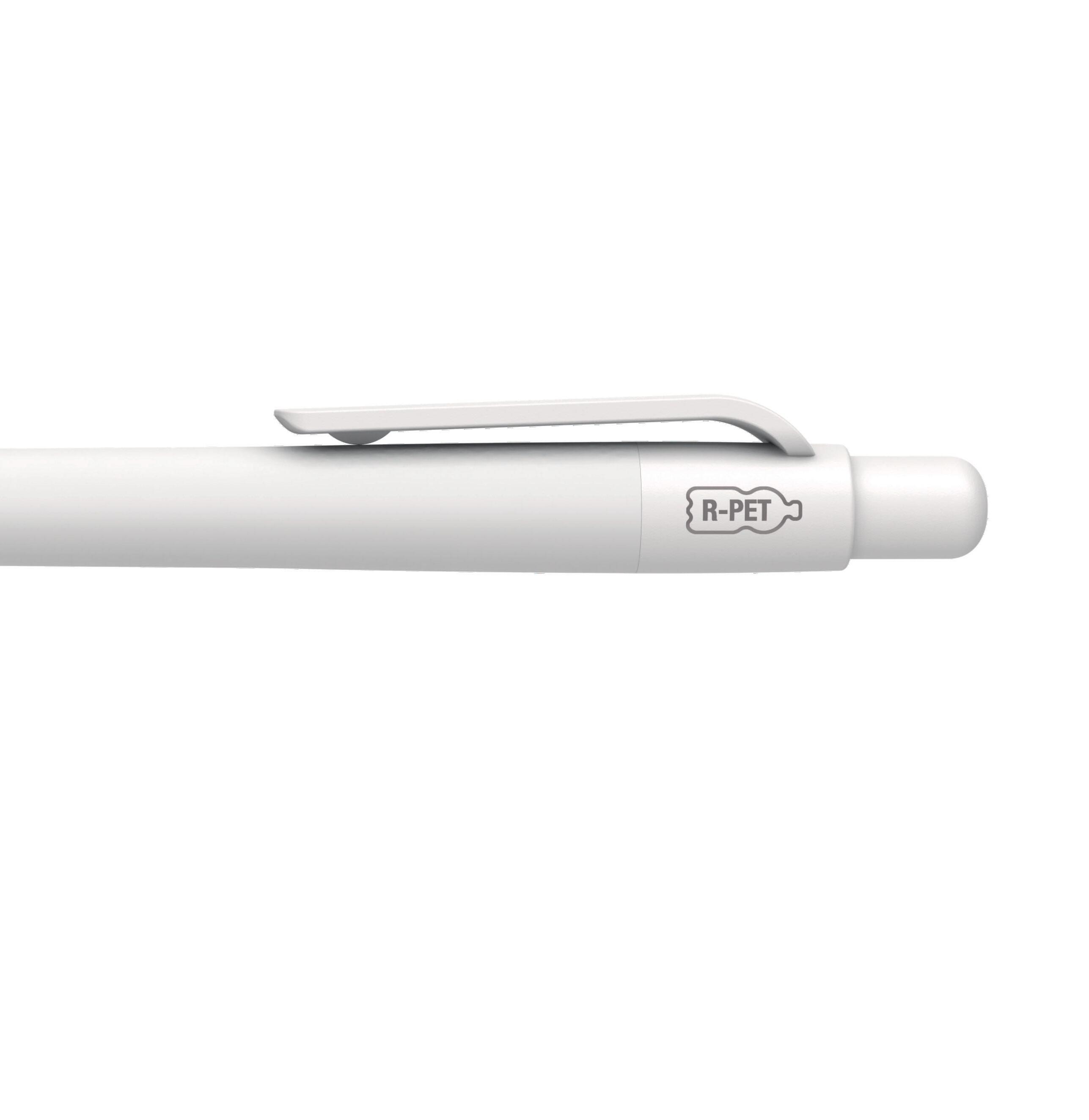 Solid colour barrel with matt finish, solid matt white colour clip and push-button