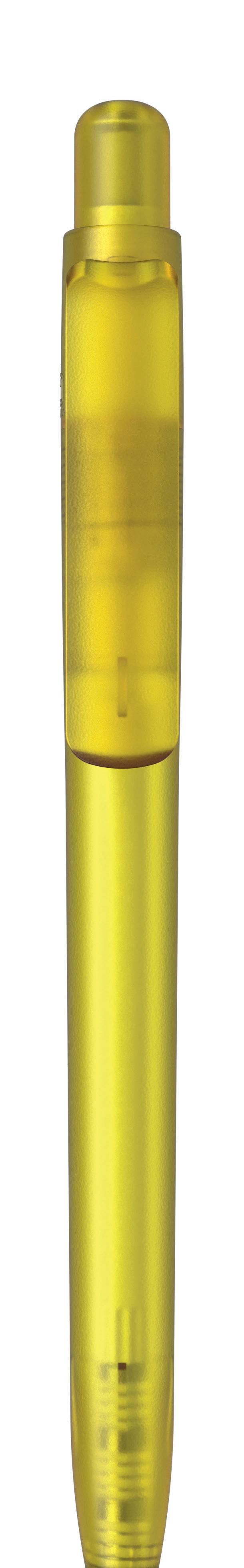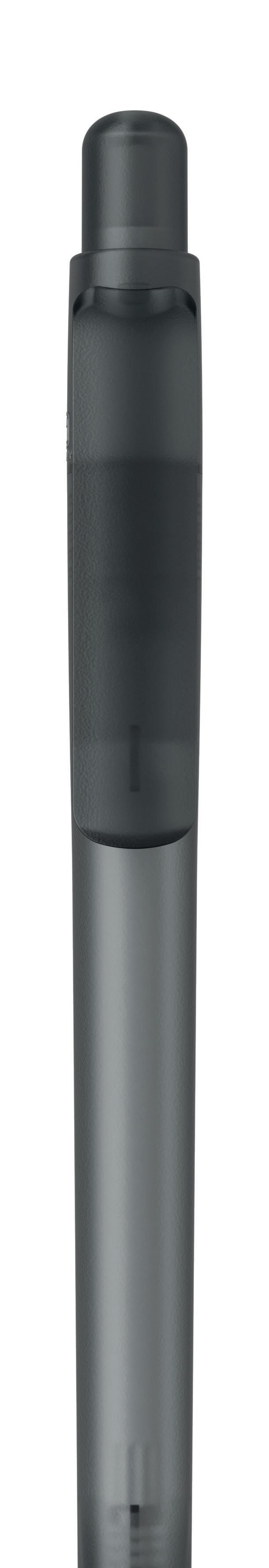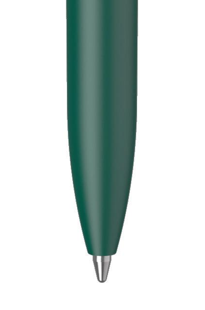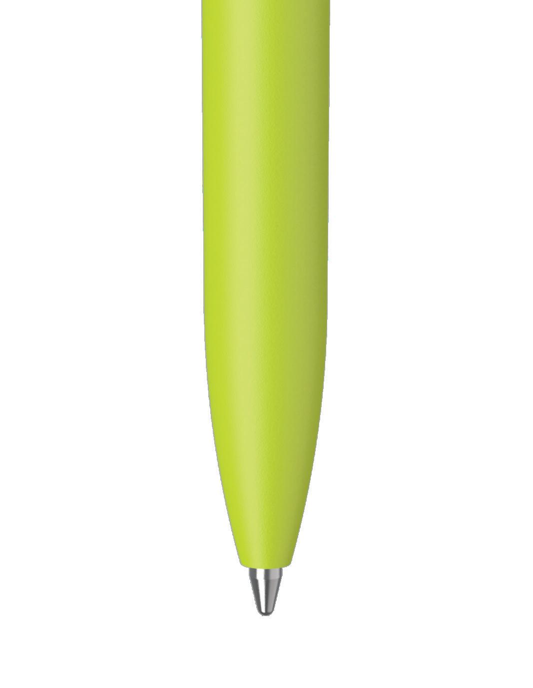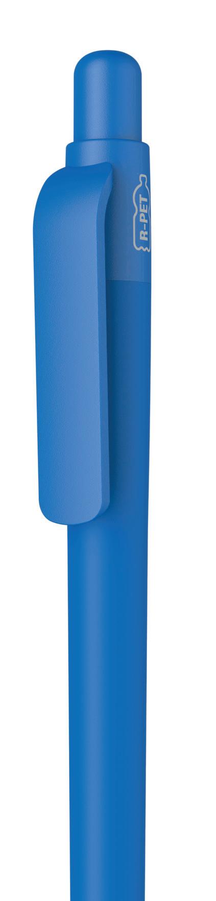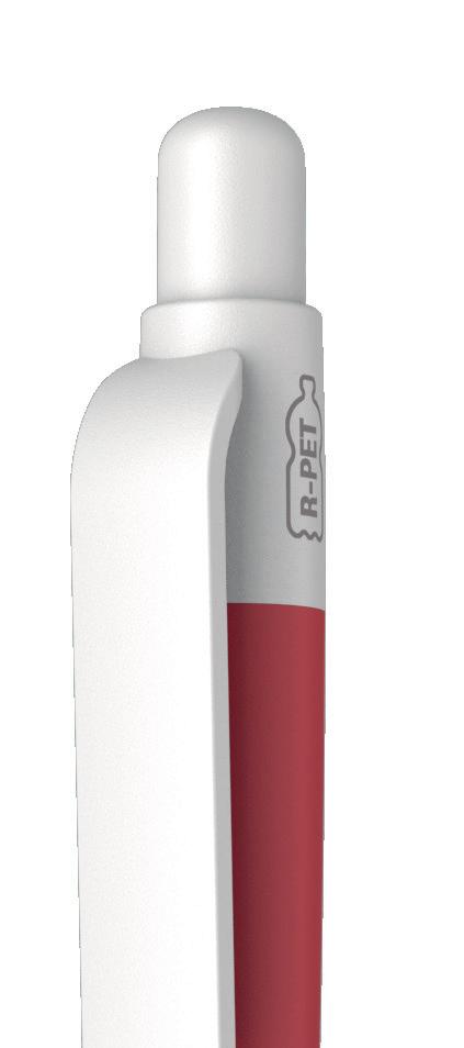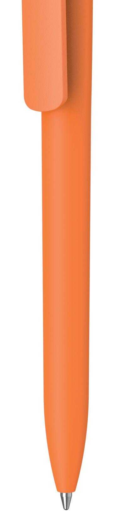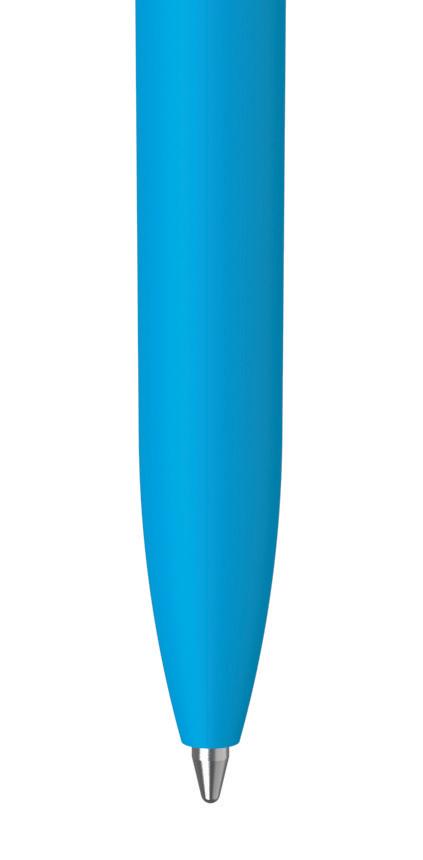 solid colour barrel with rubber finish, solid colour clip and push button with matt finish