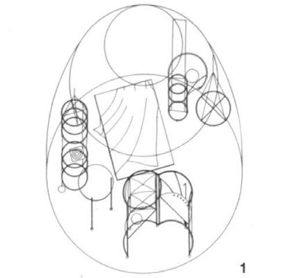 Au-delà de ce travail spatial, c’est le tracé de la courbe en elle-même qu’il est intéressant d’étudier. Conceptuellement, ils ne sont pas partis d’une forme spécifique qu’ils ont développés par la suite, mais plutôt de tentatives d’arrangement des pièces entres elles qu’ils ont ensuite réunies avec un contour. Cela impact la forme finale elle-même qui ne nous parait pas être liée au cercle alors qu’elle est intégralement composée d’arcs de cercles. Ce passage du dessin libre à une forme rationnelle et l’usage multiple d’arcs permet de ne pas rendre visuellement évident la méthode du tracé de la courbe. C’est à partir de ce moment précis qu’on re-