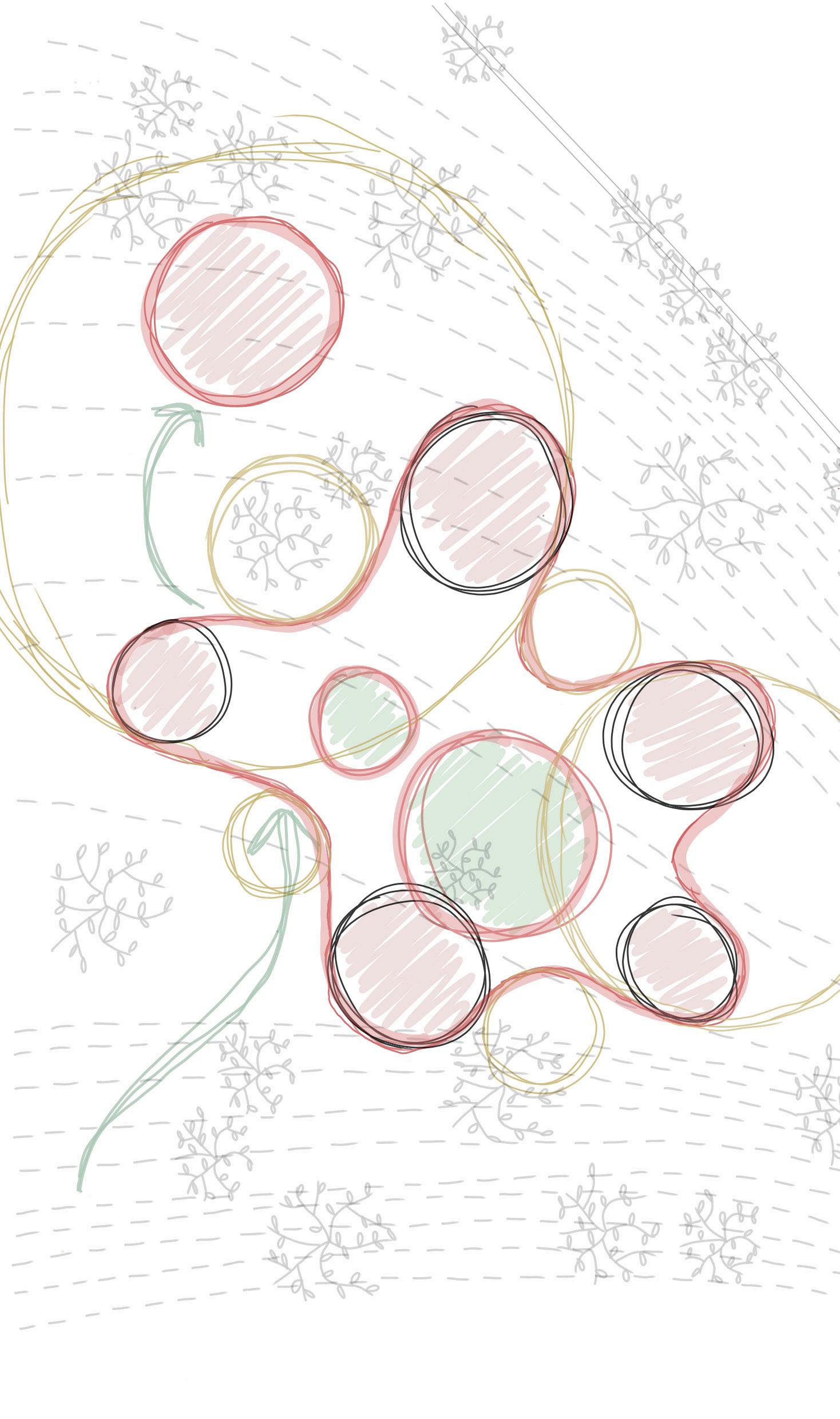 Fig.3 : Grace Farm Cultural Center, diagramme du projet, dessin des auteurs