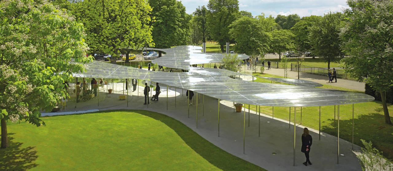 Lorsqu’ils produisent le pavillon pour la Serpentine Gallery de 2009, ils s’inspirent des arbres environnants pour étendre le parc à travers le projet. La forme finale de la toiture s’abstrait de celle d’une canopée d’arbre et semble presque fluide, flottant dans son contexte.