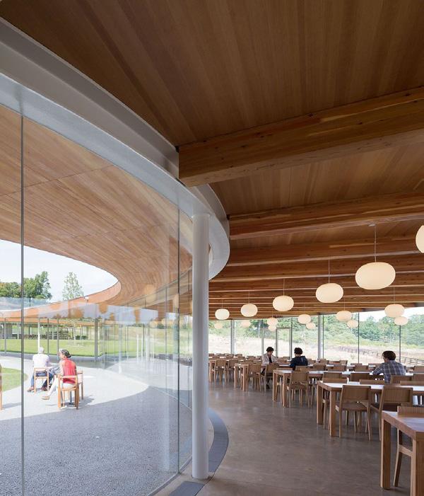 chitectes, la forme résultante est celle qui s’adapte le mieux au site, et la structure nécessaire pour s’adapter à une telle forme permet de fragmenter le bâtiment et son programme en quatre parties répondant au fonctionnalisme nécessaire pour une usine. La façade faite de tôle ondulée vient ensuite masquer les segments de béton et unifie l’ensemble en cachant notamment les joints. Le rythme des différentes ondulations quant à lui contraste avec la grandeur de la forme du projet qui créé une certaine incompréhension lorsque l’on se trouve à côté, ne sachant pas s’il s’agit d’un cercle parfait ou non. Ces deux exemples illustrent la mesure dans laquelle SANAA passe par plusieurs actions pour construire la courbe et ne cherche pas à magnifier la création de cette dernière, ni les modalités qui lui permet d’exister pour arriver à un procédé qui met l’accent sur les effets permis par cette courbe.