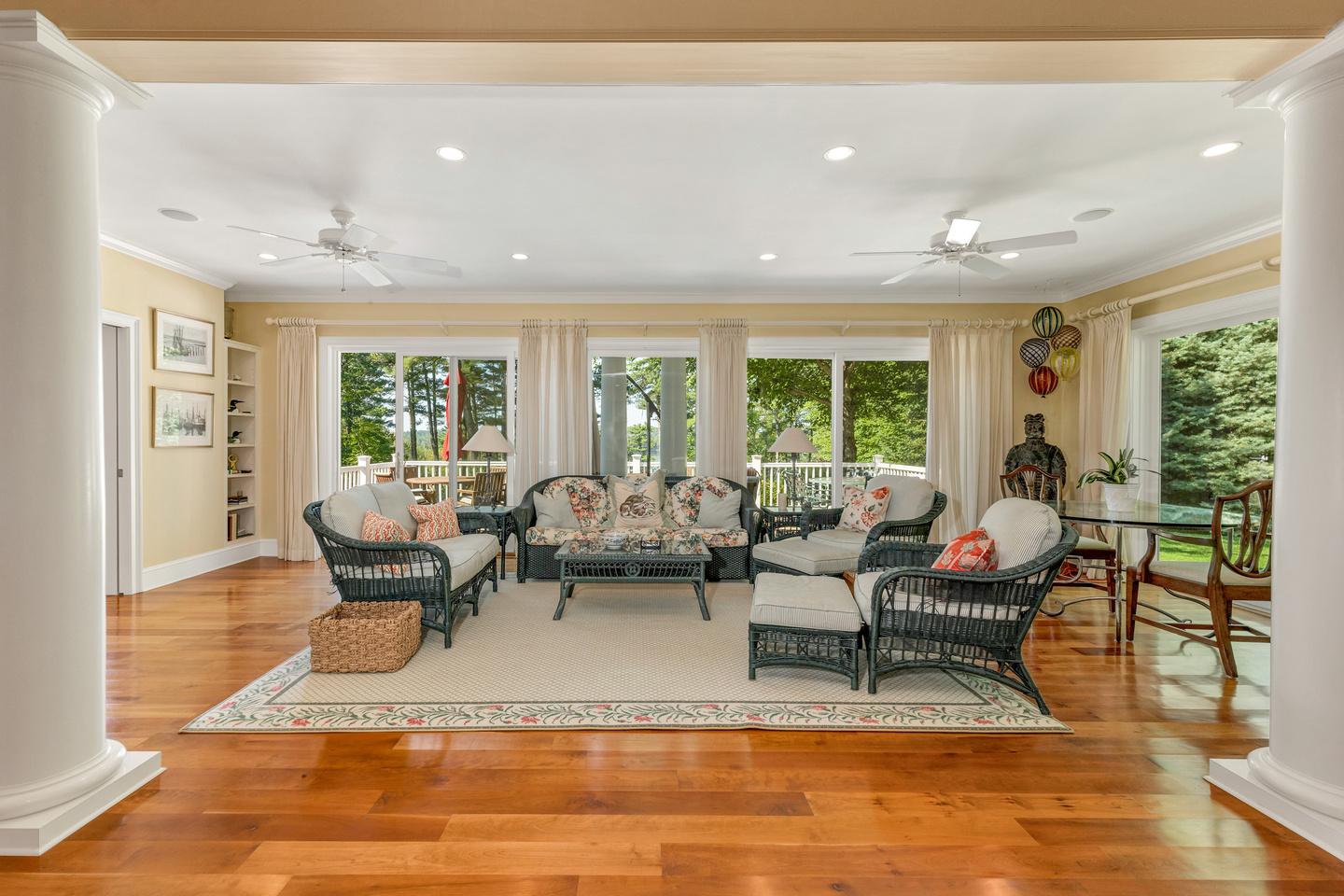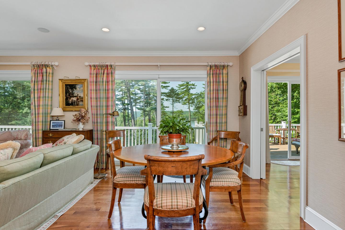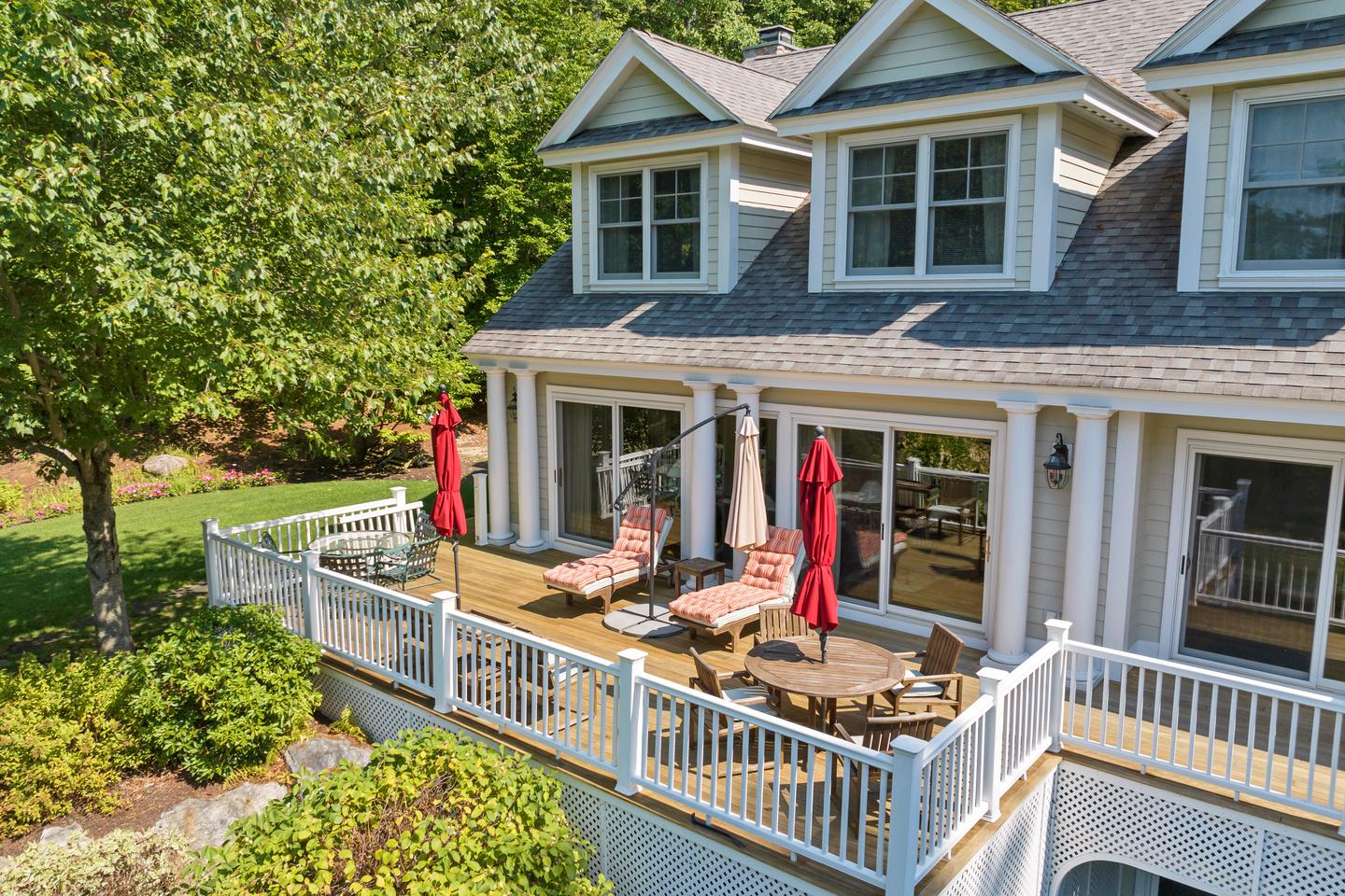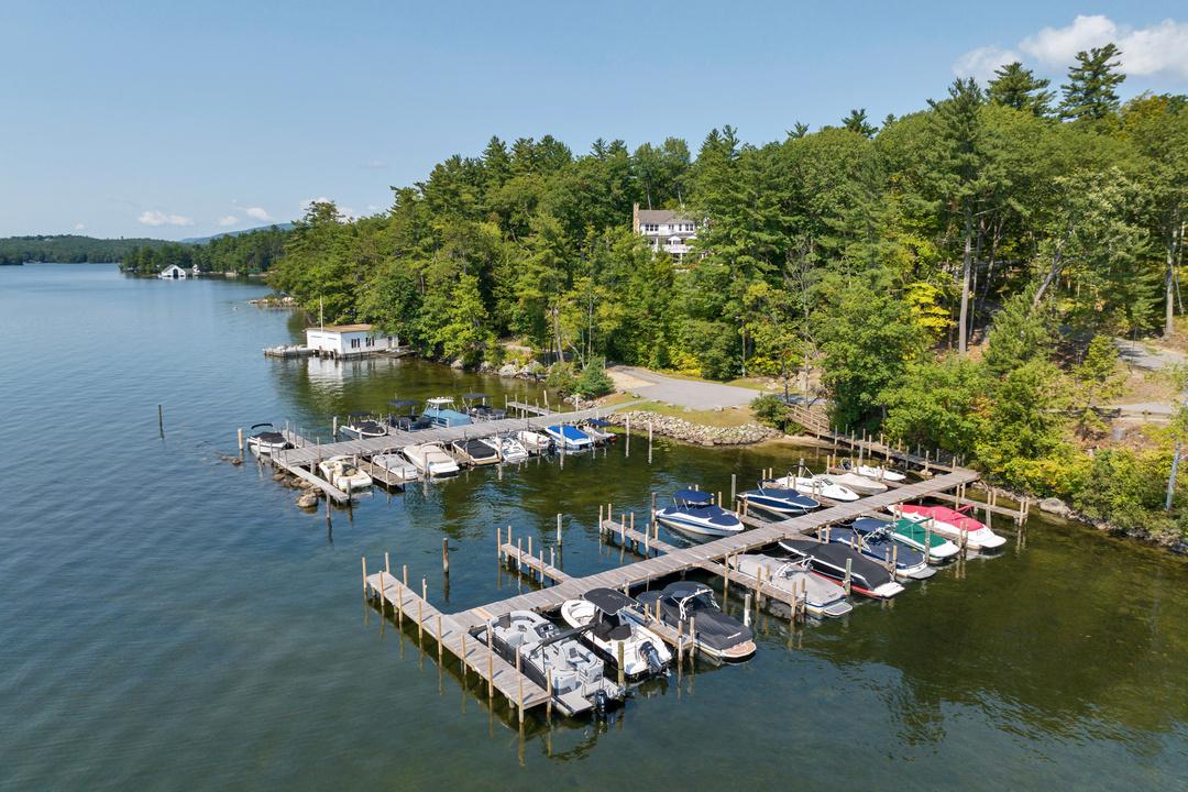 This spacious, year-round modern home is beautifully landscaped and overlooks Lake Winnipesaukee with beach access to Bald Peak’s second beach This 5000+/- square foot home is privately situated on 2 1 acres and is well suited for a large family with its open-concept styling, and perfectly suited for entertaining. The first floor consists of a large fireplaced livingroom, a family room with fireplace, which opens to the well-appointed kitchen complete with granite counters and stainless steel appliances, including Jenn-Air double ovens and Fischer-Paykel gas stove. The laundry room, a spacious office and a four-season, light-filled sunroom also reside on the first floor. A highlight of this wonderful home is the richly appointed first floor Master Suite, which includes two walk-in closets, a study, en-suite full bath, fireplace and sliders to the outside deck, spanning the length of the home There is rich, hardwood Cherry flooring throughout the first level The second-level of this magnificent home boasts four large bedrooms overlooking the lake Plenty of room for guests with the extra bunkroom/playroom, café/office lounge and two and a half baths The walkout ground level awaits the new owners vision. This house was completed in 2007. There is opportunity to rent a dock and use two of the clubs beaches.