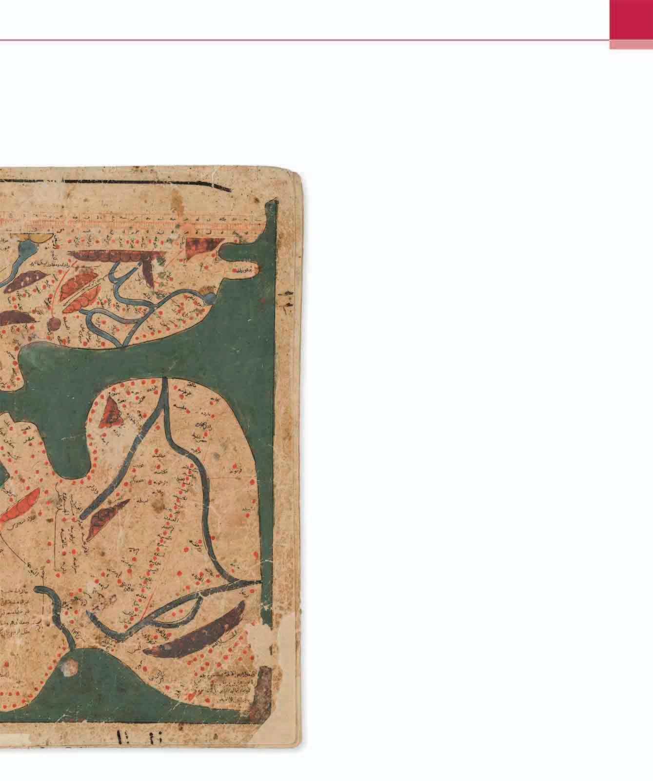 In 2002, the Bodleian Library in Oxford, UK, acquired an anonymous Arabic treatise compiled in Egypt between 1020 and 1050 during the Fatimid Dynasty, titled Kitāb Gharā’ib al-funūn wa-mulah al-‘uyūn (“The Book of Curiosities of the Sciences and Marvels for the Eyes”). The manuscript, which describes the heavens and the Earth according to Muslim astronomers, scholars, and travelers, has transformed our understanding of early Islamic cosmology and geography. It includes several maps of the inhabited world, including two world maps, one of which is circular, while the other, shown here, is rectangular. This map is unlike any other surviving map from either the Christian or Muslim medieval worlds.