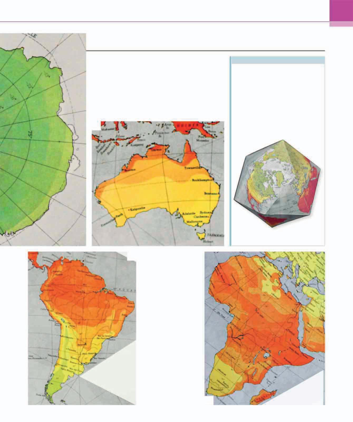 1 Fuller’s map is shown here placed on to a three-dimensional icosahedron.