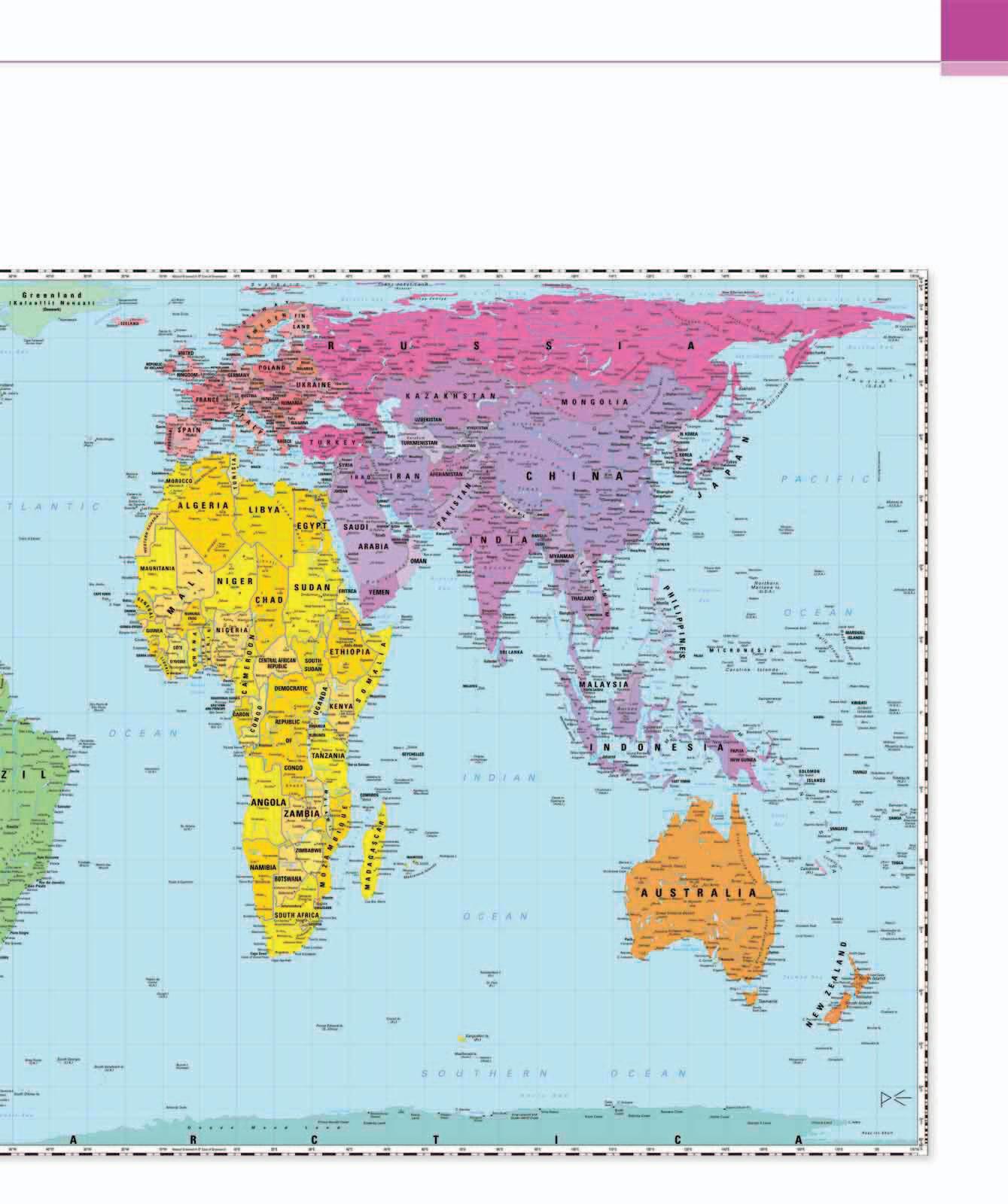 3 GREENLAND Peters pointed out that Mercator’s projection distorted the sizes of landmasses. Greenland covered 811,000sq miles (2.1 million sq km), but on Mercator maps it dwarfed China’s 3¾ million sq miles (9.5 million sq km). Peters’ projection corrected this, although the distortion on the map’s northern and southern extremities gave the country a strangely flat shape.