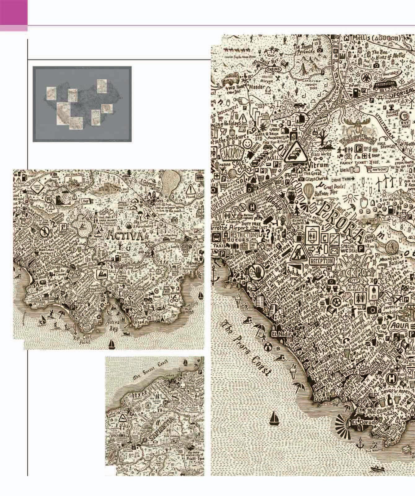 1 FILTHY RICH IN FLOSRIS Many people’s utopian aspirations could be encapsulated in the wealthy retreat of Flosris, the playground of the superrich, with its yachts and villas—it even includes “Paradise.” However, it also has its dystopian dimensions: there are cosmetic surgery resorts, swingers’ party houses, and trespassers are liable to prosecution. 7