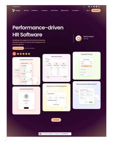 EfficientEmployeeManagement–Tracksattendance,leave,andperformanceseamlessly RegulatoryCompliance–HelpsbusinessescomplywithMOHREandUAElaborlawupdates ImprovedProductivity–AutomatesrepetitiveHRtasks,allowingHRprofessionalstofocuson strategicinitiatives