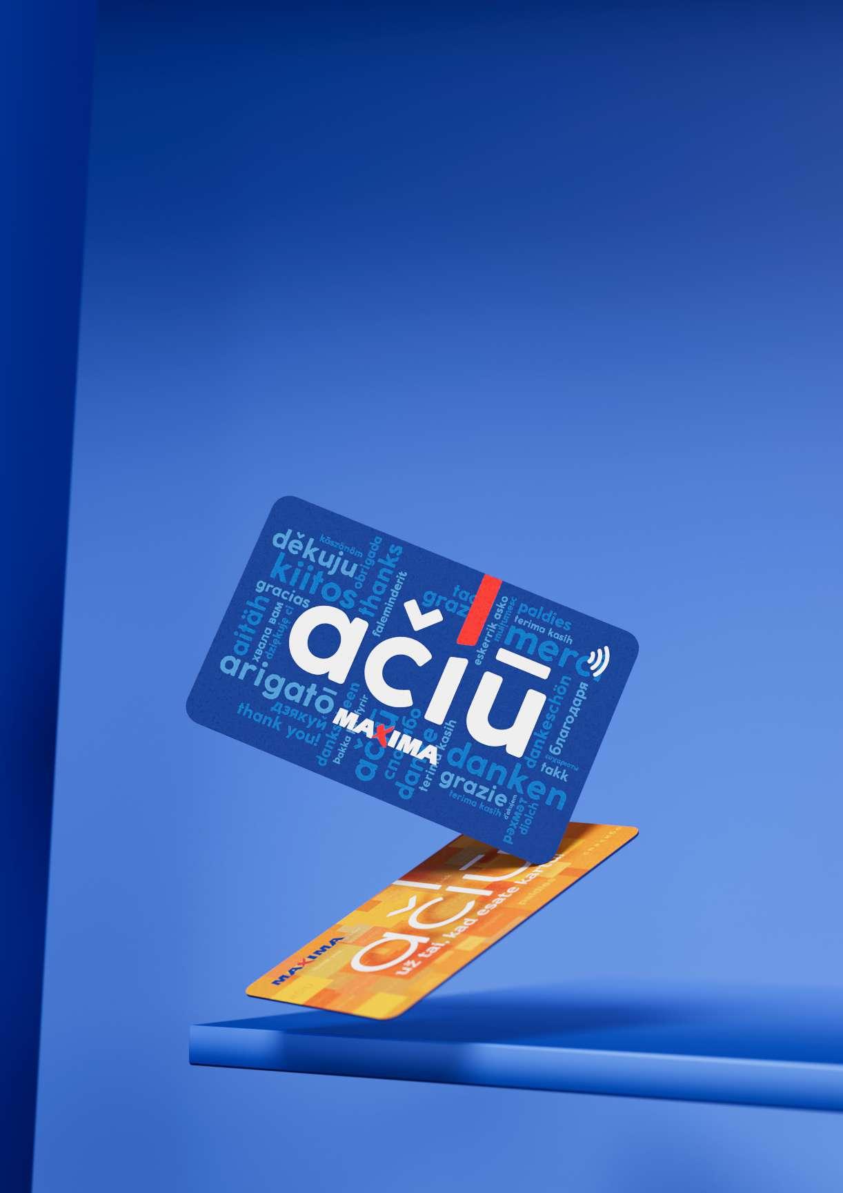 AČIŪ kortelė atsinaujino. Atsinaujinkite ir Jūs! Pasikeiskite AČIŪ kortelę dabar ir gaukite 3 papildomas nuolaidas kitam apsipirkimui.* AČIŪ kortelę galite pasikeisti iki 2023 m. vasario 28 d. Daugiau informacijos www.maxima.lt arba MAXIMOS programėlėje. *Papildomomis nuolaidomis bus galima pasinaudoti nuo 2022 m. rugsėjo 20 d. iki gruodžio 19 d.