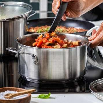 danga 3 Padengtos keramine nesvylančia danga be PFAS, todėl maisto produktai prie jos nelimpa 3 Tinka visų tipų viryklėms, įskaitant indukcines 3 Dėl itin storo pagrindo keptuvės greitai ir tolygiai įkaista 3 Pritaikytos gaminti ant didelės ugnies įvairiais būdais – kepti, skrudinti, troškinti 3 Didesnis atsparumas įbrėžimams 3