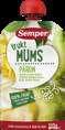 Puuviljapüree Semper, 110 g õuna-vaarika-banaani; virsiku-õuna-banaani; pirni-banaani-mango; kaera-mustika 12.64/kg