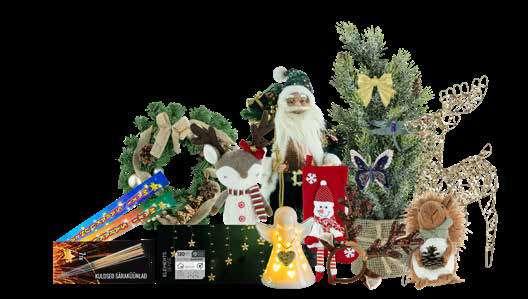 Jõuluehted, kunstkuused ja elektrilised jõulukaunistused, karnevalitooted, pürotehnika