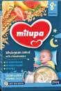 Puder Milupa, 250 g šokolaaditükkidega; puuvilja; õuna-pirni; maasika 13.56/kg