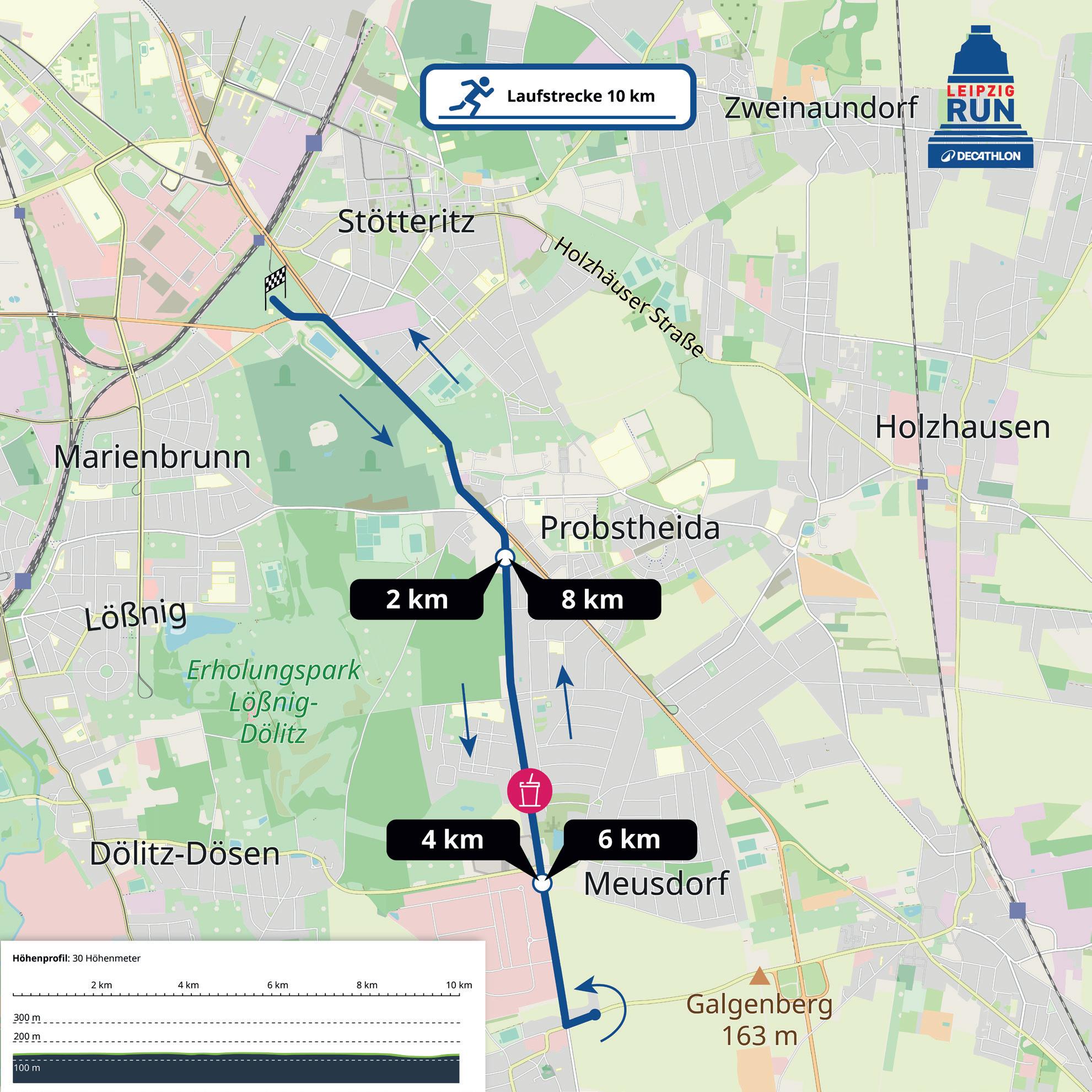 Auch dieses Jahr wieder: der 10km-Lauf #LEIPZIG10k. Die Strecke verläuft vom Völkerschlachtdenkmal, über die Prager Straße und Chemnitzer Straße bis zum Wendepunkt. Die Strecke ist sehr flach und verläuft ausschließlich über asphaltierte Straßen. Die Streckenführung läßt sehr schnelle Laufzeiten zu. Ein tolles Lauferlebnis auf den Straßen von Leipzig. Genieße auf den 10km den Lauf und die Verbindung zur Leipziger Völkerschlacht. Musikalische Aktionspunkte auf der Strecke bringen zudem Unterhaltung und Abwechslung.