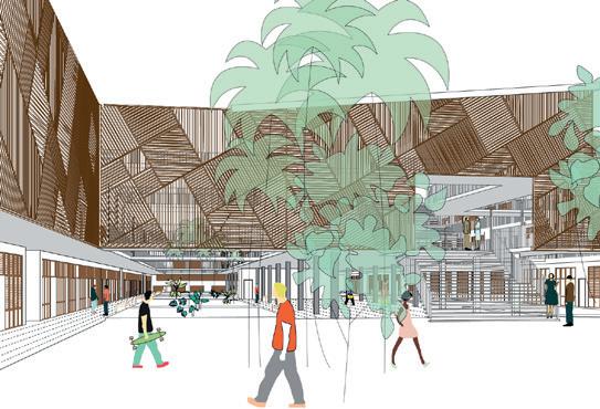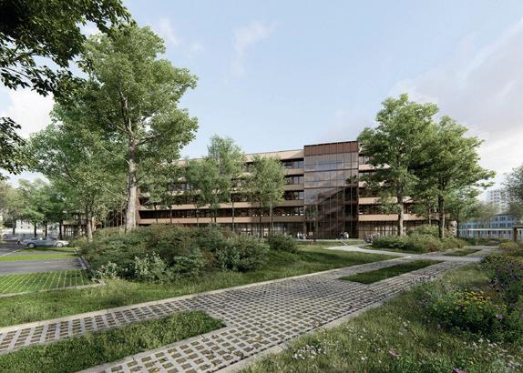 Trois espaces partagés sont crées dont un solarium, une piscine ainsi qu’un gand jardin.