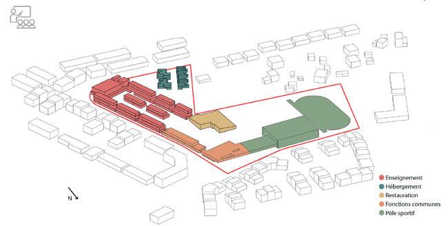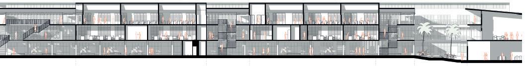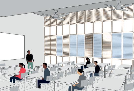 Le bâtiment Ravezies est conçu pour regrouper sur ses cinq niveaux un établissement d’enseignement supérieur et des plateaux de bureaux.