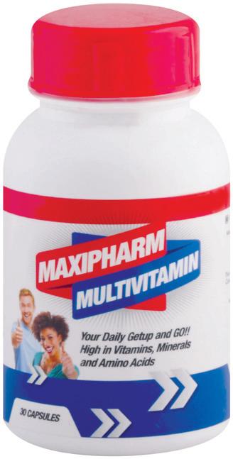 VITAMINS & SUPPLEMENTS Sale products may vary from photographs. Maximed reserves the right to limit the quantity of any item offered for sale. Pictures are for illustration purposes only. Prices include VAT and are valid for cash, debit or credit card. E&QE. D&K Advertising 953 Tel. Standerton: 017 712 1375 • Tel. Volksrust: 017 735 2004 • Promotion valid from 17 April to 7 May 2023 while stocks last. Turbovite Focus / Vitality / Excel 20 effervescent tablets Caring Beyond Medicine 8999 SAVE 1000 5999 SAVE 1000 8999 SAVE 1000 8999 SAVE 1000 8999 SAVE 1000 6999 SAVE 1000 5999 SAVE 1000 SAVE 3000 10999 NOW ONLY each 15999 SAVE 3000 each 10999 SAVE 3000 each 11999 SAVE 4700 each 5999 SAVE 1000 4999 SAVE 1000 5999 SAVE 1400 7999 SAVE 2000 6999 SAVE 1600 each 7999 SAVE 2000 5199 SAVE 1300 11999 SAVE 600 17999 SAVE 4900 8999 SAVE 2000 14999 SAVE 3000 12999 SAVE 3000 19999 SAVE 3800 Replace 400g assorted Replace Junior 400g assorted Replace Diabetic 400g assorted Nativa Vitamin C Fizzy 10 x 5g citrus passion blast GREAT DEAL Nativa MultiDefence 60 tablets Cal-C-Vita 30 effervescent tablets orange VALUE PACK MagBoost / 15 effervescent tablets Hydrolec Salt 30 tablets Saltabs 30 tablets Plusssz Cold & Flu Multivitamin 10 effervescent tablets DailyBoost 30 effervescent tablets EnerBoost 15 effervescent tablets Vital Brewer’s Yeast 180 tablets Vital Vitamin B 60 capsules Vital Cranberry 30 softgel capsules Immunizer Herbal 60 softgel capsules Omega 3 90 softgel capsules Milk Thistle 60 tablets Calmag Plus 60 tablets Glucosamine 60 capsules Magnesium Chelate 90 capsules Calm 60 capsules Vitamin C 100 tablets