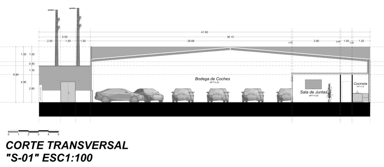 Diseño arquitectónico de una bodega industrial con intervenciones exteriores de más de +1000 m². El proyecto ejecutivo principal fue para una bodega destinada a albergar más de +25 autos clásicos, con una oficina moderna que incluye un área principal para eventos y una fachada de estilo rústico campestre. Además, el diseño contempla una bodega lateral para almacenamiento, la construcción de una nueva plaza, baños para empleados, oficina de gerencia y otros detalles de las instalaciones.