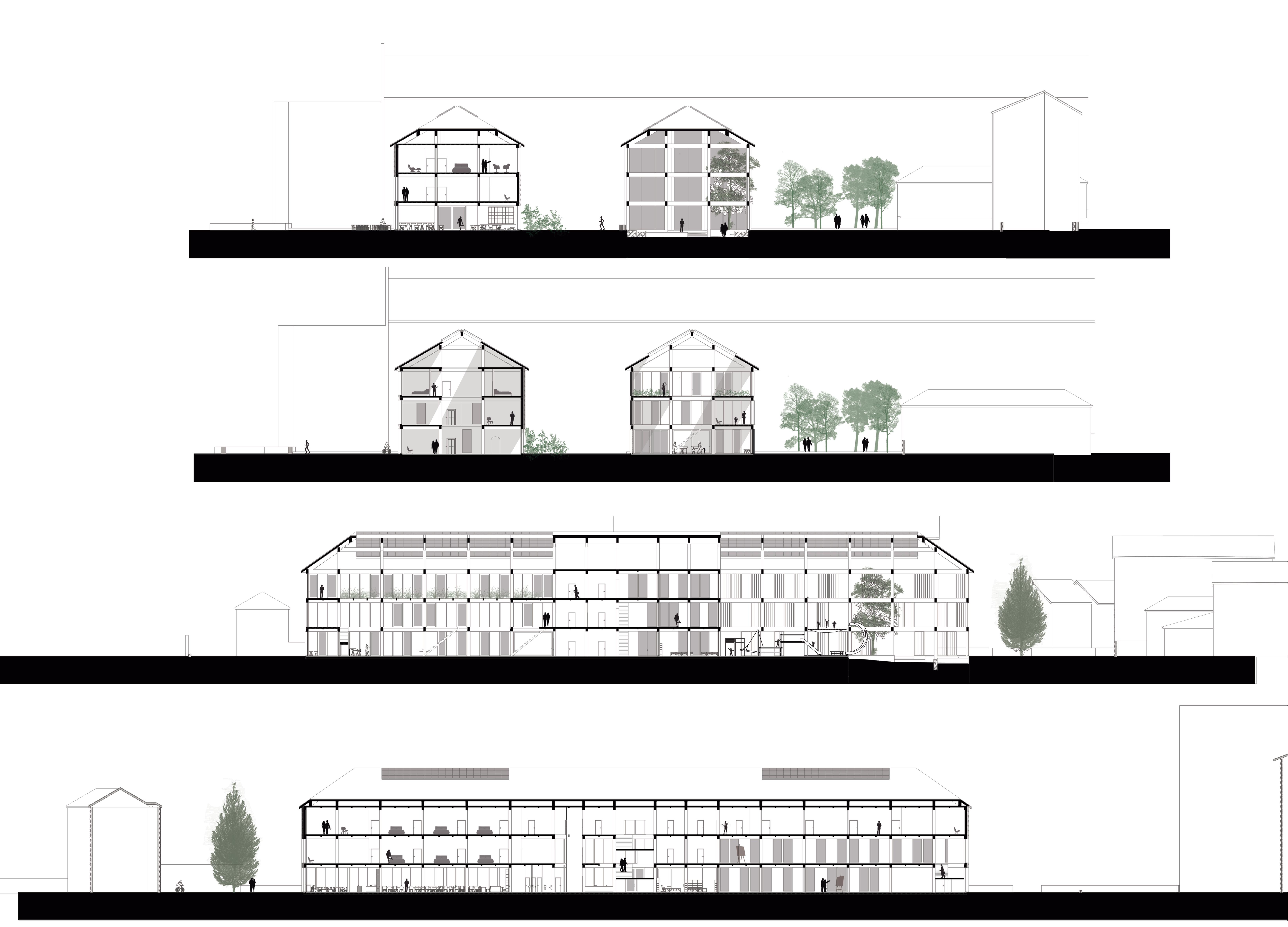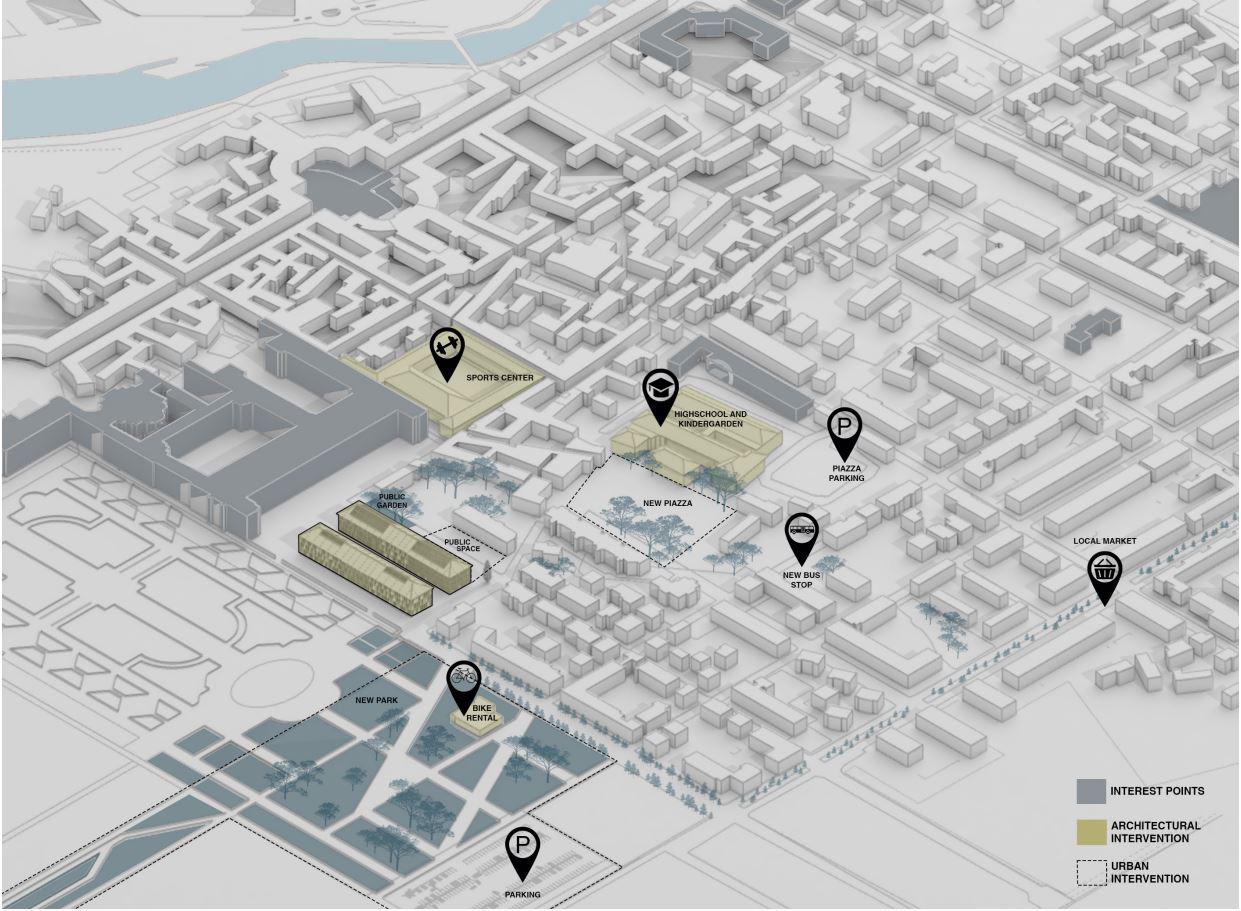 As for the urbanistic approach, the “parking lot place” is essential to the ongoing dynamics of the city today. We therefore chose to implement the programs around the place rather than on it, exploring the potentials of unused backyards.