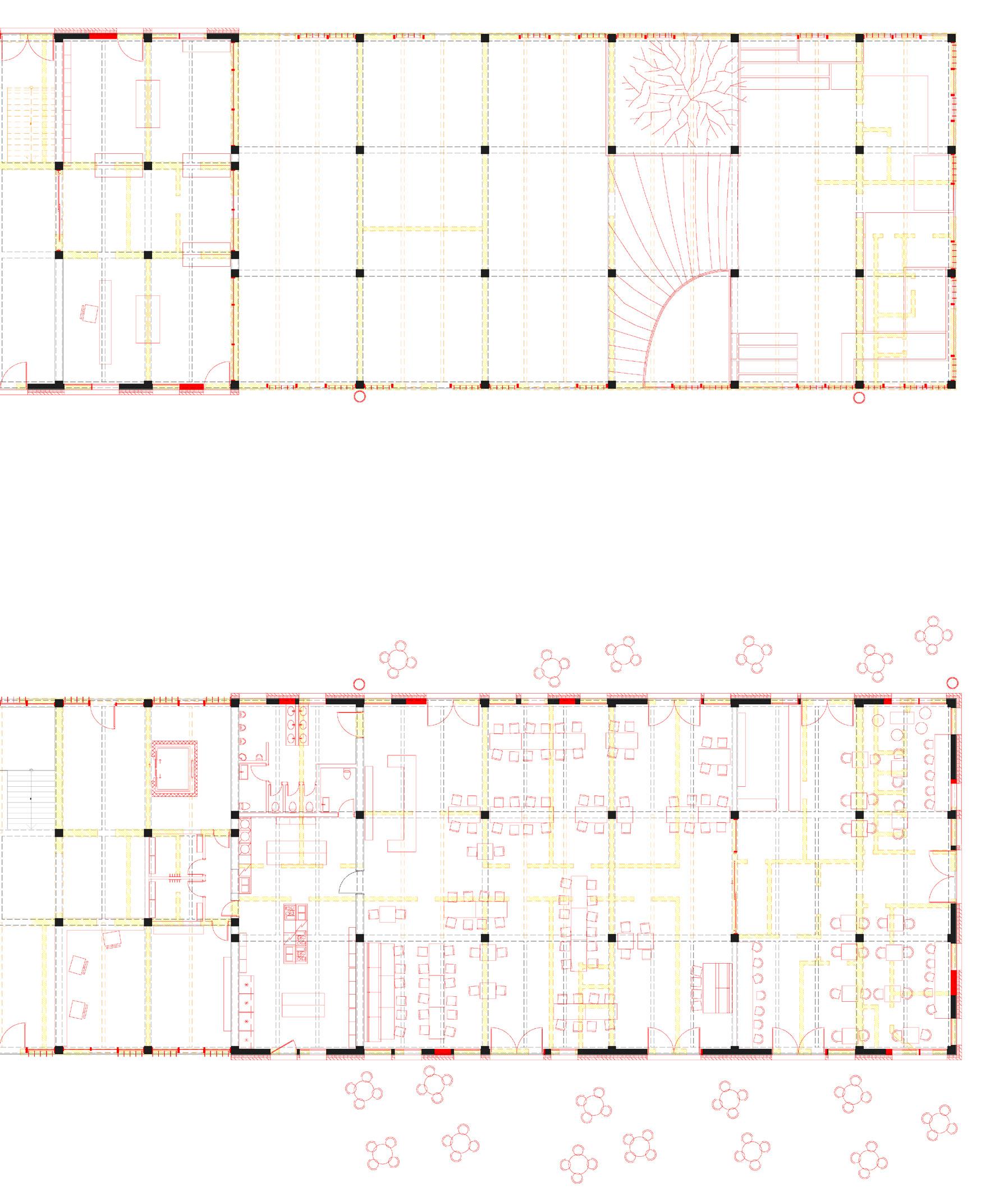 The proposals are therefore based on an adjustment of the PRM bathrooms which are fitted into the existing reinforced concrete structure. Subsequently, the spaces are redesigned by partial decompartmentalization in order to create wider circulations. The number of rooms is reduced in order to obtain larger ones, more suitable for people with reduced mobility and including a kitchenette and personal bathrooms.