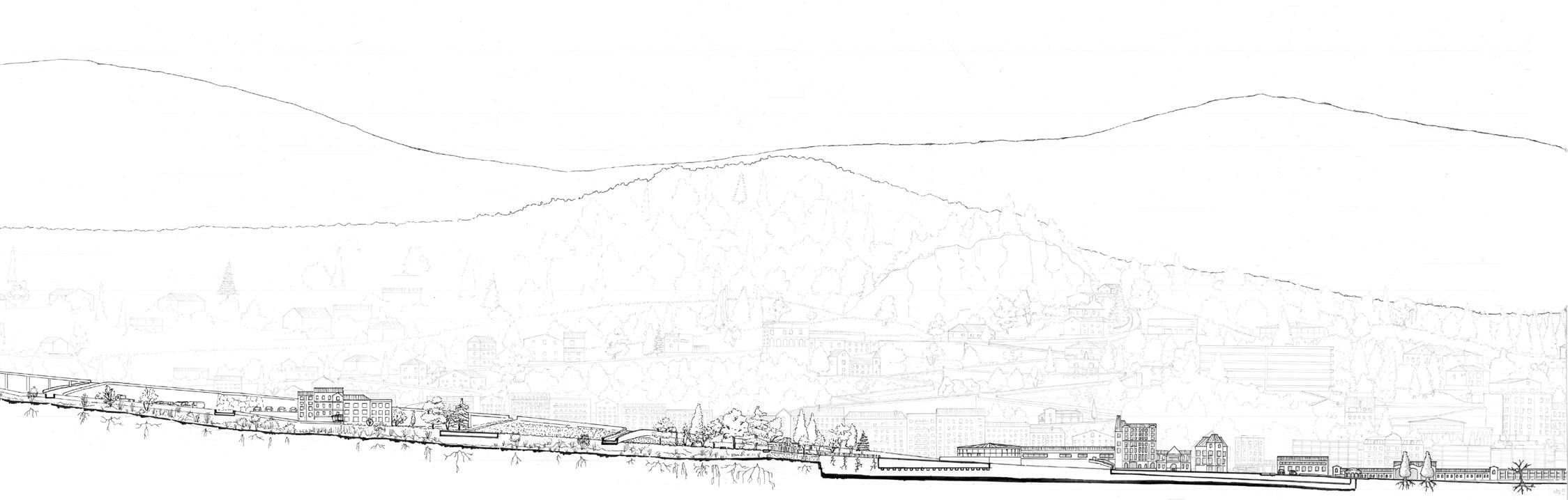 This project takes place according to the hypothesis in which the city keeps over-populating itself and invites to reflect on urban expansion. In a desire to preserve the natural landscapes surrounding the metropolis, 5 typologies of housing implantation were thought in harmony with a resurgence of vegetated soils and the Tiretaine river, buried multiple decades ago.