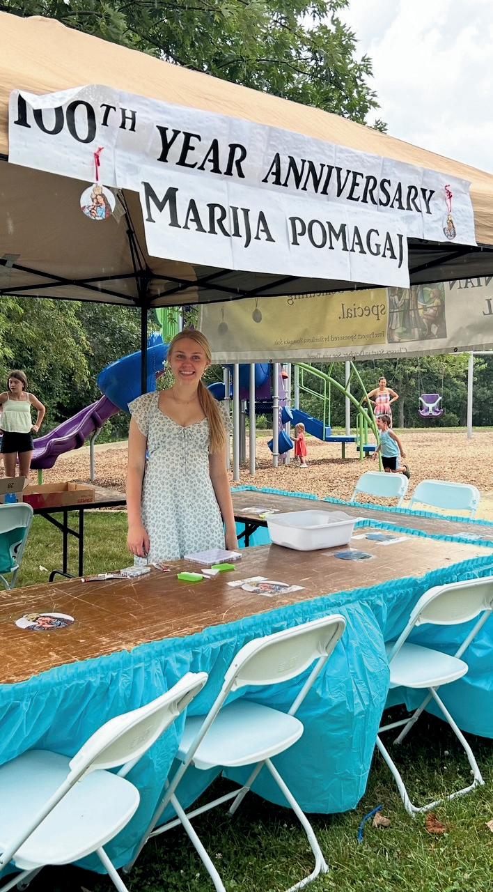During the SCC annual picnic this past August, the Slovenian School craft was inspired by the 100-year anniversary of the crowning ofMarija Pomagaj in Lemont, IL. Children of all ages visited thešolatent to take part in creative activities that honored this special milestone. From bedazzling ornaments of Marija Pomagaj to designing their ownLjubljanski zmaj/dragon, the tent was filled with joy, color, and cultural pride. It was a beautiful way to connect with heritage and celebrate a century of devotion. Our heartfelt thanks to the volunteers who helped bring this craft to life for many children: Gabriela Anaya, Maja Magajne, Teya Magajne, Sofia Magajne, and Alenka Rus!