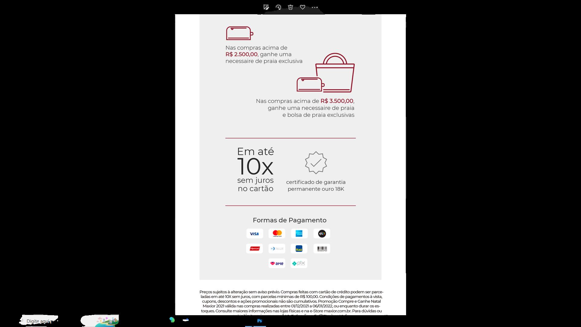 Preços sujeitos à alteração sem aviso prévio. Caso haja divergência na descrição do produto ou de preço entre o catálogo digital e o site, a condição válida será a do site. As ofertas anunciadas neste catálogo são válidas até 14/08/22. As imagens encontradas no catálogo são meramente ilustrativas. Compras feitas com cartão de crédito podem ser parceladas em até 10x sem juros, com parcelas mínimas de R$ 100,00. Condições de pagamentos à vista, cupons, descontos e ações promocionais não são cumulativos e não são válidos para alianças, relógios, acessórios e Coleção Filhotes Pássaros. Consulte maiores informações nas lojas físicas e na E-Store maxior.com.br.