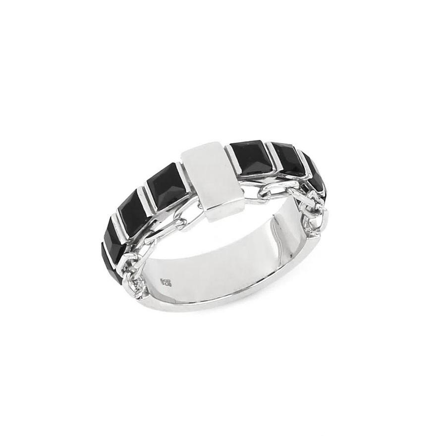 4 Anel Trail Masculino em Prata de Lei 925 com Corrente e Ônix/ REF:P961327