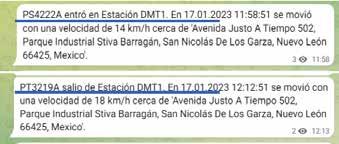 Notificaciones de entrada y salida de domicilios de los operadores: