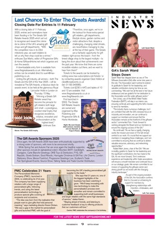 pages 74-75 – and learn more about cultfavourite Legami. Turn to pages 62-63. With our thoughts now turning to retail excellence, The Greats Gift Retailer Awards are still very much open for entries – the closing date is 11 February –so if you think you’re a retailer that’s a cut above the rest, please take some time out to enter this year’s competition. Simply email your entry to me directly at suem@max-publishing.co.uk while, if you’re a supplier, we’d love you to tell us which retailers you’d like to nominate! Turn to page 9 for more about the competition.