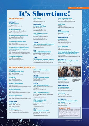 UK SHOWS 2022 JANUARY 16-18 Top Drawer Olympia, London Web: www.topdrawer.co.uk