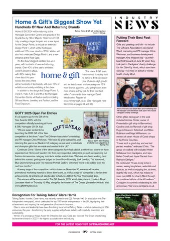 “The Home & Gift team have worked incredibly hard to deliver a third successive year of double-digit growth, and we look forward to showcasing over 15% more brands again this July, giving buyers even more choice as they look for their next best sellers,” comments show manager David Westbrooke. Register at www.homeandgift.co.uk. (See Harrogate Here We Come on pages 34 and 35).