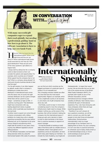 Elsewhere in this issue, Sarah Ward, ceo of The Giftware Association, explains how the GA can help companies to take those early steps into the international space. Turn to page 25. Plus, take a dip into the GA’s Education resources on pages 64-65. And finally, for the full lowdown on Harrogate Home & Gift, taking place from 21-24 July, turn to pages 9, 34 and 35. There’s more about Home & Gift too, from our columnist Libby Holden, owner of Lovely Libby’s in Rayleigh. Turn to page 33. Here at Progressive Gifts & Home, we’re counting down the days, with Ali and I looking forward to walking the aisles and to socialising with everyone at the Sundowners drinks party on Sunday evening (21 July), which, this year, is sponsored by Progressive Gifts & Home. But first, turn to pages 9-17 for the most up to date industry news, plus much else besides.