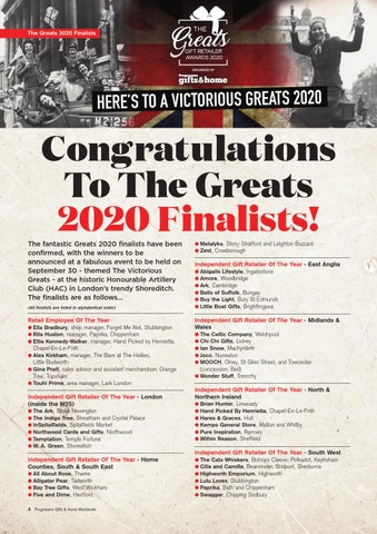 Independent Gift Retailer Of The Year - North & Northern Ireland l Brian Hunter, Limavady l Hand Picked By Henrietta, Chapel-En-Le-Frith l Hares & Graces, Hull l Kemps General Store, Malton and Whitby l Pure Inspiration, Ramsey l Within Reason, Sheffield