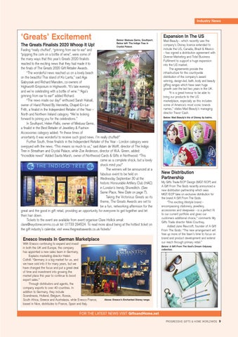 Feeling “really chuffed”, “grinning from ear to ear” and “popping the cork on a bottle of wine”, were some of the many ways that this year’s Greats 2020 finalists reacted to the exciting news that they had made it to the finals of The Greats 2020 Gift Retailer Awards. “The wonderful news reached us on a lovely beach on the beautiful Thai island of Ko Lanta,” said Aga Gabrysiak and Richard Marsden, co-owners of Highworth Emporium in Highworth. “It’s late evening and we’re celebrating with a bottle of wine.” “Aga’s grinning from ear to ear!” added Richard. “The news made our day!” enthused Sarah Halsall, owner of Hand Picked By Henrietta, Chapel-En-LeFrith, a finalist in the Independent Retailer of the Year – North and Northern Ireland category. “We’re looking forward to joining you for the celebrations.” In Southport, Helen Pallis, owner of Medusa Gems, a finalist in the Best Retailer of Jewellery & Fashion Accessories category added: “In these times of uncertainty it was wonderful to receive such good news. I’m really chuffed!” Further South, three finalists in the Independent Retailer of the Year - London category were overjoyed with the news. “This means so much to us,” said Adam de Wolff, director of The Indigo Tree in Streatham and Crystal Palace, while Zoe Anderson, director of W.A. Green, added: “Incredible news!” Added Savita Marsh, owner of Northwood Cards & Gifts in Northwood: “This came as a complete shock, but a lovely shock mind you!” The winners will be announced at a fabulous event to be held on Wednesday September 30 at the historic Honourable Artillery Club (HAC) in London’s trendy Shoreditch. (See Same Place, New Date on page 7). Taking the Victorious Greats as its theme, The Greats Awards are set to be a fun, networking afternoon for the great and the good in gift retail, providing an opportunity for everyone to get together and let their hair down. Tickets to the event are available from event organiser Clare Hollick email: clare@keystonecomms.co.uk tel: 01733 294524. To read more about being at the hottest ticket on the gift industry’s calendar, visit www.thegreatsawards.co.uk/tickets/