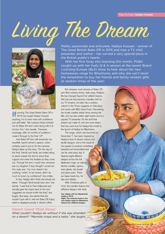 Petite, passionate and articulate, Nadiya Hussain - winner of The Great British Bake Off in 2015 and now a TV chef, presenter and author - has carved a very special place in the British public’s hearts. With her first foray into licensing this month, PG&H caught up with her lively Q & A session at the recent Brand Licensing Europe (BLE) show to hear about her new homewares range for BlissHome, and why she can’t resist the temptation to buy her friends and family random gifts at random times of the year!