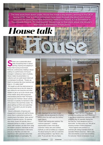 teven Lew is passionate about retail, recognising that it is about learning, reacting and adapting in today’s fast moving environment. Moreover, contemporary retailing is about putting on a performance. At House’s managers’ conferences, held in Australia, Steven makes his presentation in a costume such as a gold sequin tailed suit to emphasise his attitude: “People say there’s no business like show business, but there is – it's called retail!” PH caught up with the retail pioneer on his most recent trip to the UK, where he was visiting his own branches and other retailers to get an up to the minute sense of the market, along with buying and merchandising director Kate Thompson and buyer, Kim Northam. Steven admits that back in Australia, he had been in 150 of his stores in the past three weeks. “It’s about getting out there and supporting stores – if you don’t, you are not going to succeed.” Steven’s philosophy of learning and engagement is shared with staff at House, where there is substantial investment in creating teams that deliver “silver service” levels of customer service. On opening new stores, House UK typically hires a restaurant kitchen to create a “classroom” where staff members can learn from using the retailers’ products. Individuals are also provided with kitchenware to take home and use, so that they can share real experiences with customers rather than read about features on packaging. “It’s