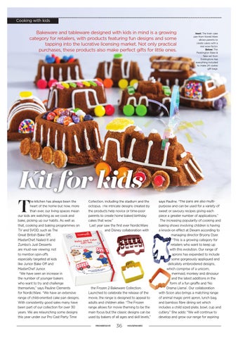 he kitchen has always been the heart of the home but now, more than ever, our living spaces mean our kids are watching as we cook and bake, picking up our habits. As well as that, cooking and baking programmes on TV and SVOD, such as The Great British Bake Off, MasterChef, Nailed It and Zumbo’s Just Desserts are must-see viewing; not to mention spin-offs especially targeted at kids like Junior Bake Off and MasterChef Junior. “We have seen an increase in the number of younger bakers who want to try and challenge themselves,” says Pauline Clements for NordicWare. “We have an extensive range of child-oriented cake pan designs. With consistently good sales many have been part of our collection for over 30 years. We are relaunching some designs this year under our Pro Cast Party Time