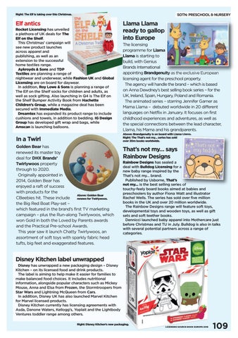 In a Twirl Golden Bear has renewed its master toy deal for DHX Brands’ Twirlywoos property through to 2020. Originally appointed in 2014, Golden Bear has enjoyed a raft of success with products for the Above: Golden Bear CBeebies hit. These include renews for Twirlywoos. the Big Red Boat Play-set – which featured in the brand’s first TV marketing campaign – plus the Run-along Twirlywoos, which won Gold in both the Loved by Parents awards and the Practical Pre-school Awards. This year saw it launch Chatty Twirlywoos, an assortment of soft toys with sparkly fabric head tufts, big feet and exaggerated features.