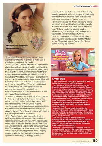 Meanwhile, Thomas & Friends has seen some significant changes to its content to make sure it maintains its position in the market. Lisa continues: “Thomas & Friends is a much-loved classic, but with any classic brand it’s important that it evolves to stay relevant. The brand is undergoing a huge evolution to ensure it remains competitive for today’s audiences and the new movie – Thomas & Friends: Big World! Big Adventures! - exemplifies this in a wonderful way with entertaining content that will help children discover and learn about the bigger world with a trusted friend. The much anticipated movie also offers the brand several additional opportunities across the franchise from theatrical/live events to consumer products, as well as a range of new exciting toys.” In addition, a new TV series – which airs on Channel 5 – features multi-cultural characters, new female protagonists and is also the first ever preschool TV show to collaborate with the United Nations. As for brands with untapped potential, Lisa believes that Mattel is in a great place to capitalise on the opportunity with Fisher-Price, and is ready to explore the “heritage and love” for the brand. Polly Pocket has also been relaunched, with a fashion partnership secured with Mimi Wade and stocked exclusively at Selfridges. “This helped us to take the brand and play in a high fashion space that was unexpected and surprising for consumers,” says Lisa. “The collaboration drove some great PR noise across Vogue, Dazed, Drapers and more – helping society to rekindle the love for this brand so we again have an exciting CP strategy planned.”
